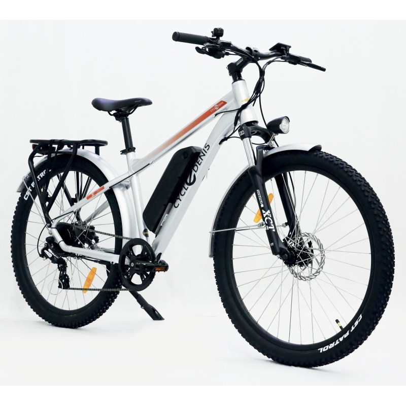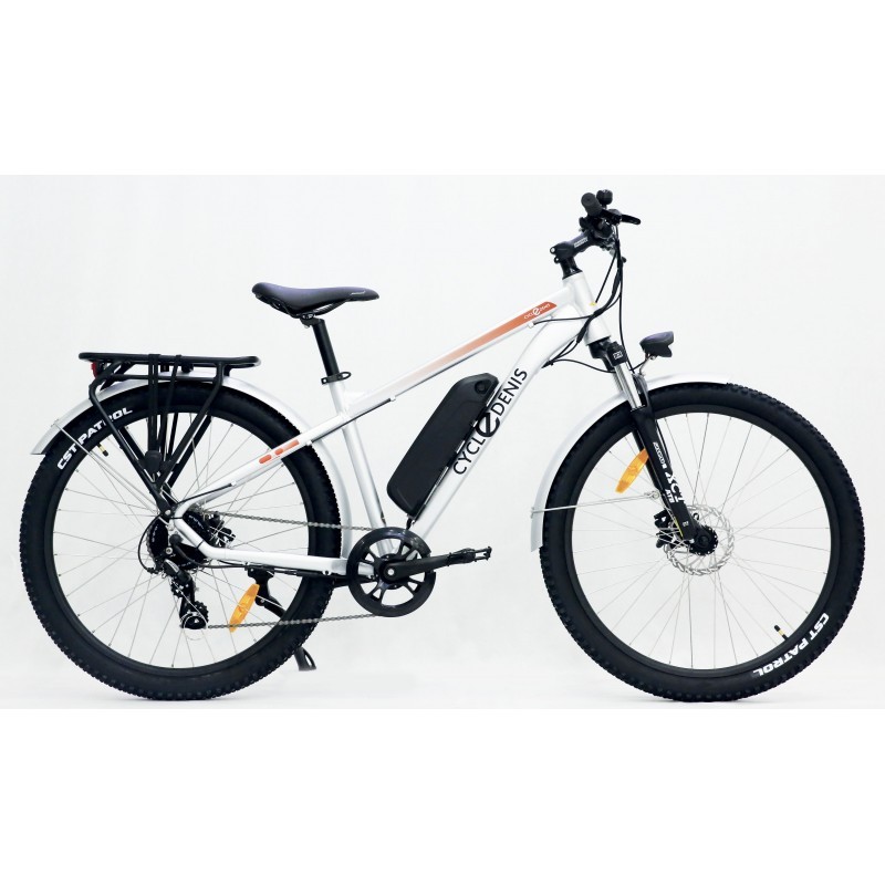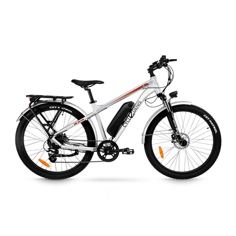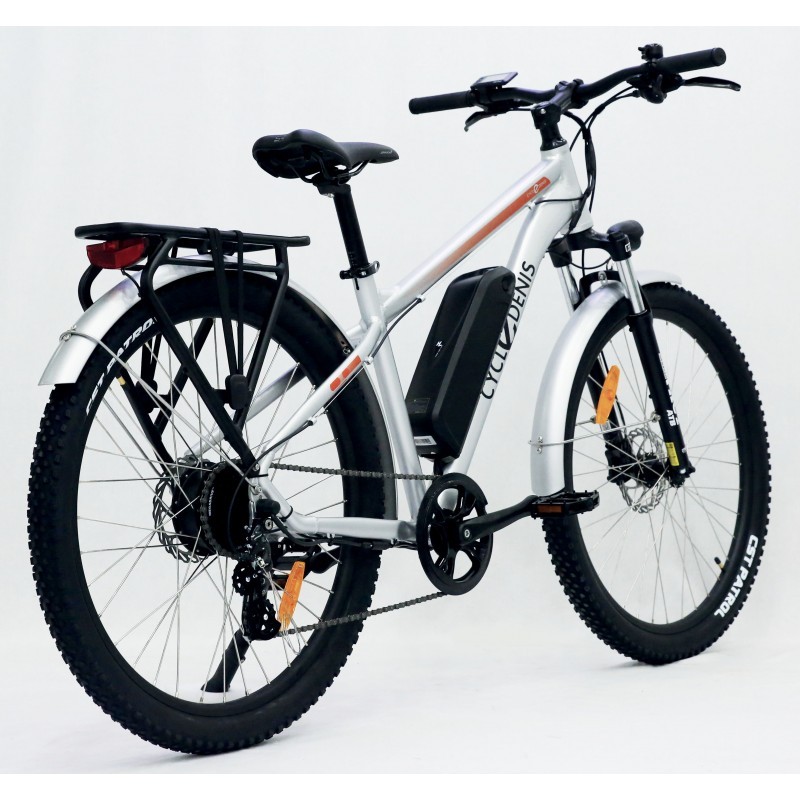 Vélo électrique CycleDenis Trekker 250W roue arrière – batterie 468Wh, autonomie 80 km, cadre aluminium, freins hydrauliques et confort optimal pour trajets et loisirs.