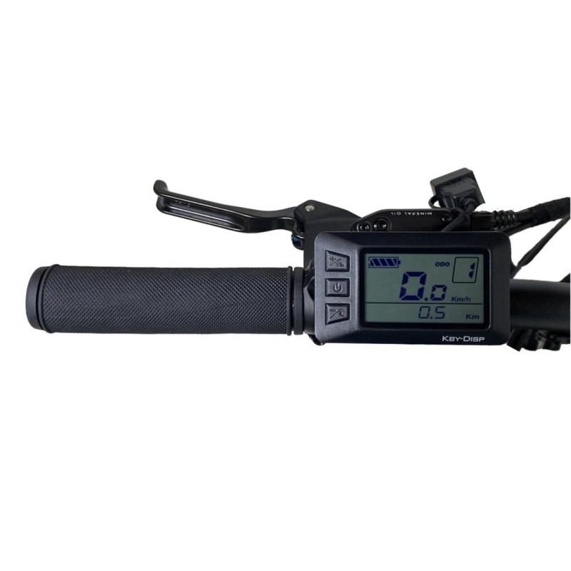 La console digitale permet de contrôler les 5 niveaux d’assistance, le mode piéton, et d’activer les feux LED avant/arrière alimentés par la batterie.