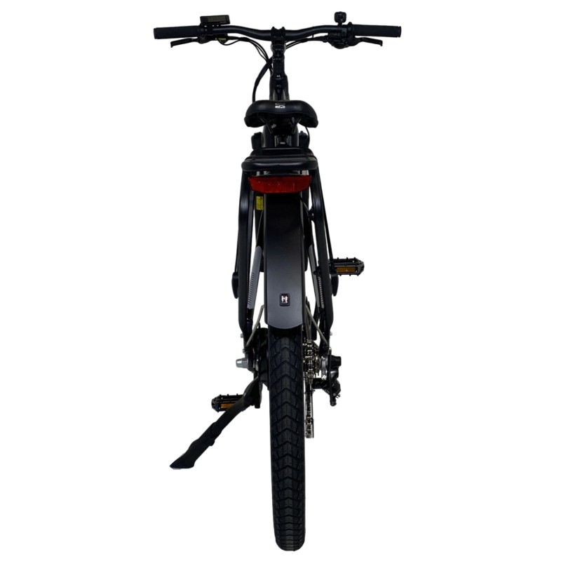 Le vélo est équipé d’un moteur brushless Bafang 250W à capteur de rotation sur la roue arrière, offrant une assistance douce et réactive.